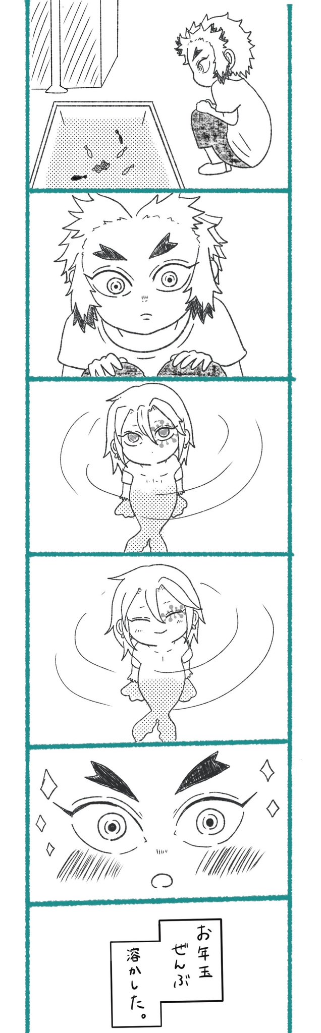 子煉さんが捕まえに来そうってコメントを頂いたので続き描いてみた。子🔥ちゃんとキンギョ宇のであい☺️ twitter.com/irikodashi_usg…