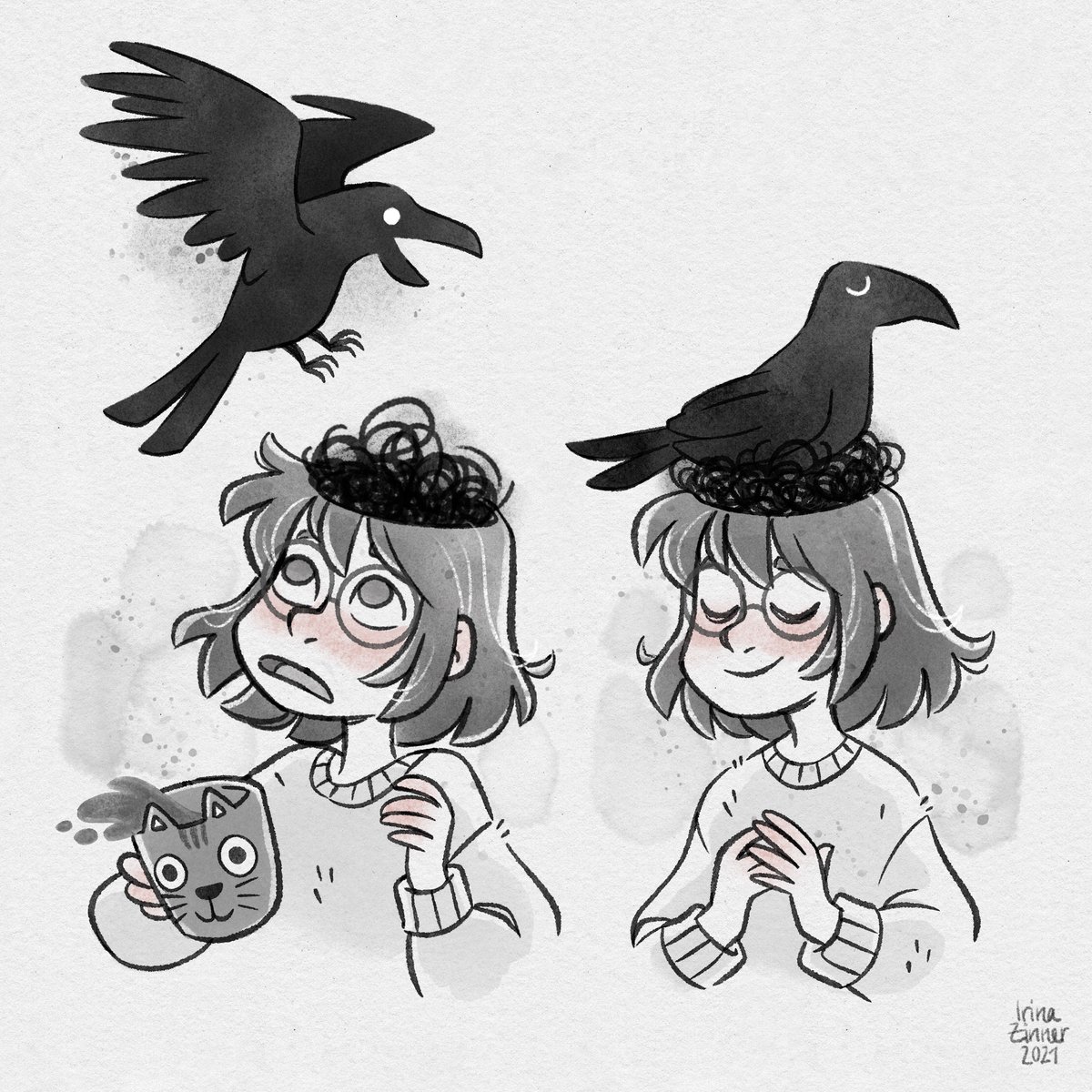 1 12 #inktober drawings number 4 and 5 with the prompts "Knot" and "Raven" belong together 🖤 #inktober2021 21/10/29 16:50