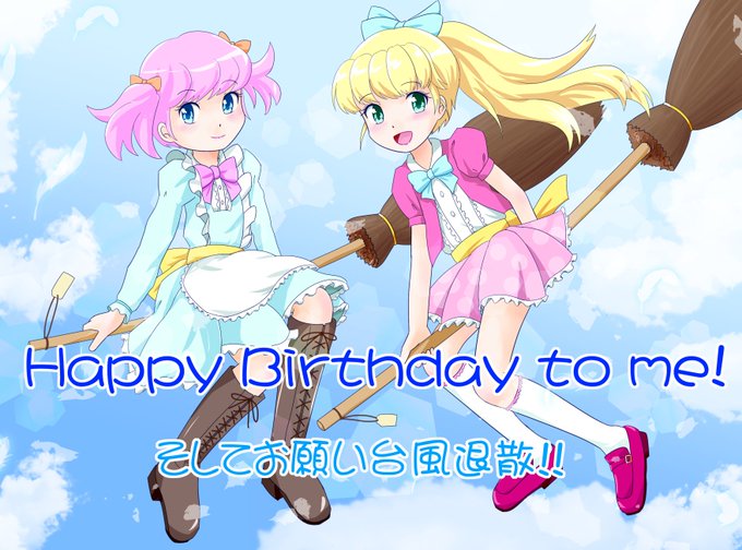 セルフおたおめ絵(゚∀゚) あとダブルタイフーン来てるので台風退散祈願にうちの子台風姉妹を奉納(゚∀゚)
