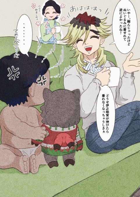 子供の大事なセーターを洗濯して台無しにしといて煽りスキルをブレることなく発揮するどまとヘイトを貯める幼児之助、いつもほわほわ琴ママ (現パロ童琴伊) twitter.com/iris_20_20/sta…