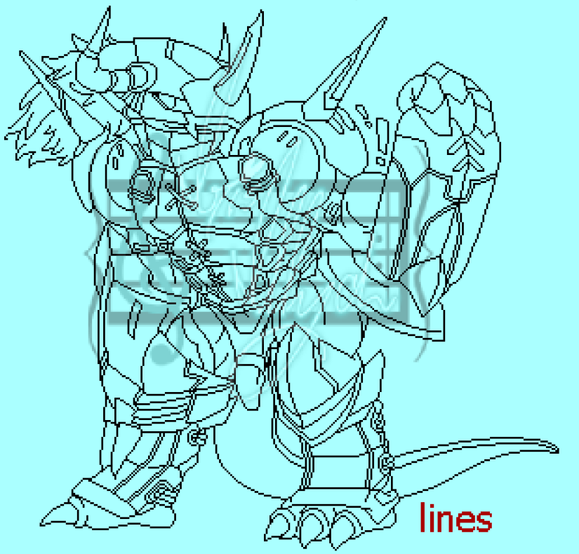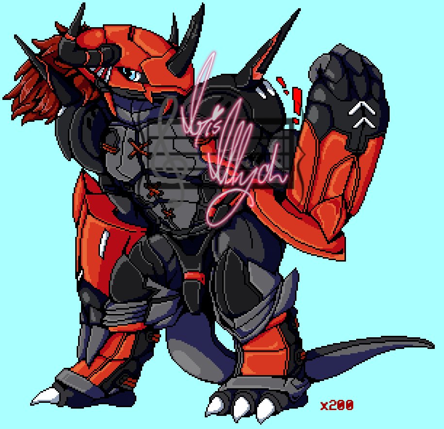 pixel commission for the wonderful @Seijakuun of their OC Sigma in their wargreymon form! <3 #pixelart #digimonoc