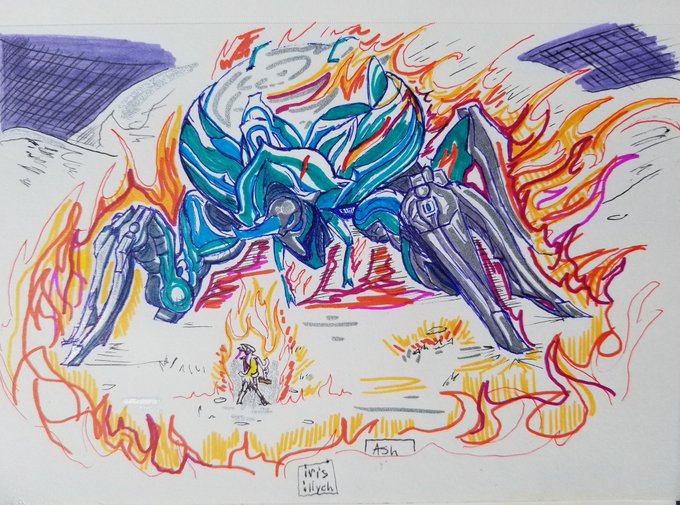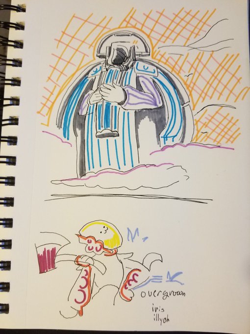 #Inktoberday14 #Inktober #warframe @PlayWarframe Overgrown I'd planned out these big shots of his statue, layered with the holo posters infront of it, tried some foreshortening but they didn't go like I wanted. So I'm gettin real sick of this dude.