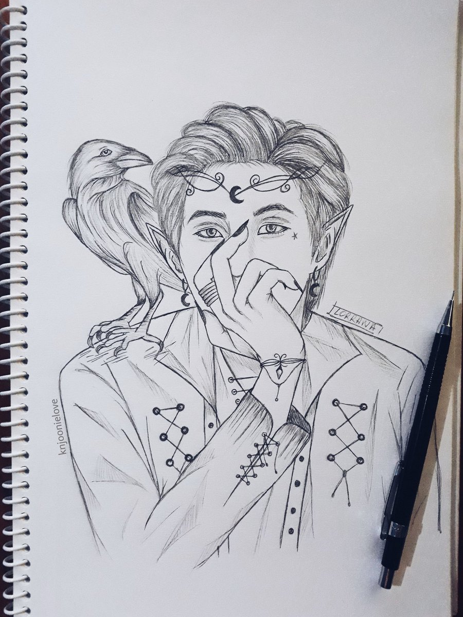então gente eu terminei o desenho do namjoon todo místico e até me arrisquei com um corvo/gavião? sei lá kkkk o que vocês acharam, ficou bom? estou insegura com o resultado :/ @BTS_twt #btsfanart #rm #namjoon