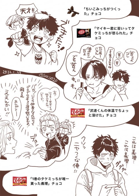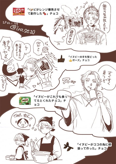 68 1097 チョコありがとうございます。 全部じゃないですけど変わり種チョコの絵 ミチ(+マイ)ばーじょん。体温でちょっと溶けたチョコとかギュンっとして最高でした…(最低の仕上げすな) 22/01/29 22:03