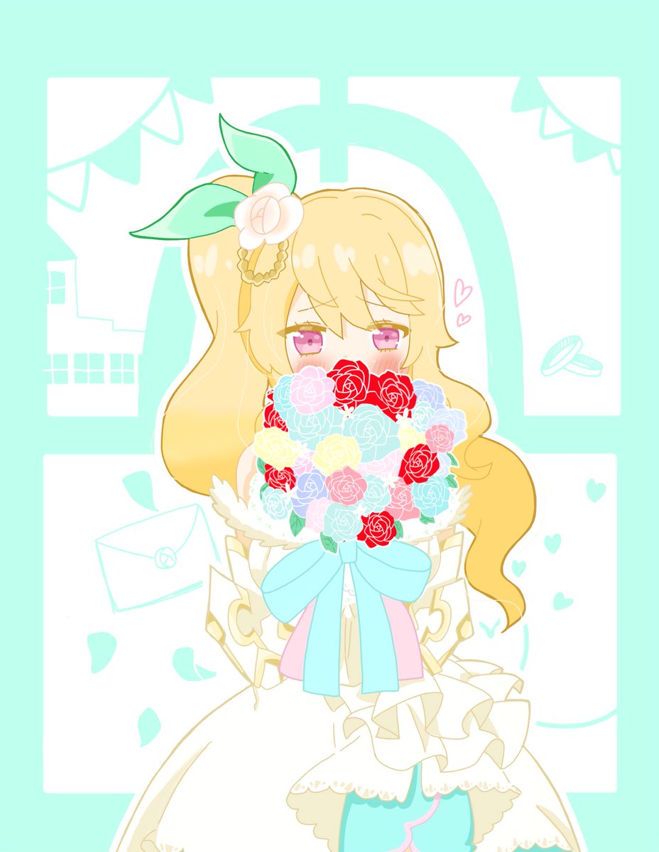 #ドラガリお絵かき部 初描きエルフィリス ウェディング可愛いよ〜 ちなみに薔薇はフリー素材のもの少しお借りしました!