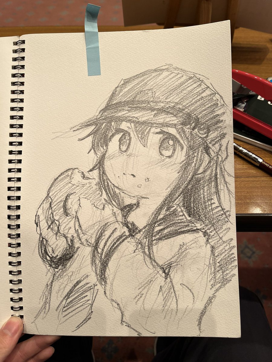 #艦これ 時雨さんを描いてみたよ もぐもぐ 紙が汚いけど許して