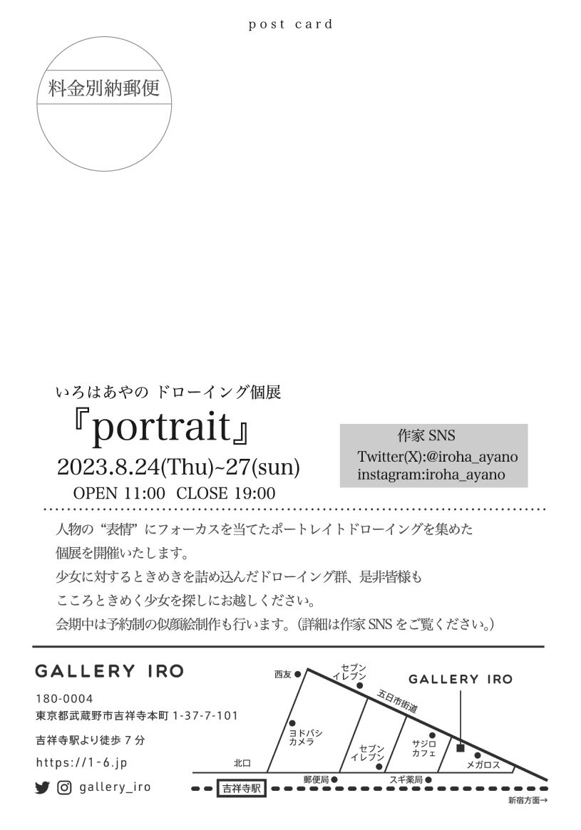 【🌟個展のお知らせ🌟】 『portrait』 期間:8/24(木)〜8/27(日) 時間:11時〜19時 場所:ギャラリーイロ(吉祥寺) ドローイングの個展を開催いたします✨ 女の子へのときめきを沢山詰め込んだ作品を50点以上展示します🌷 会期中は予約制の似顔絵制作も行います。 どうぞよろしくお願いします☺️