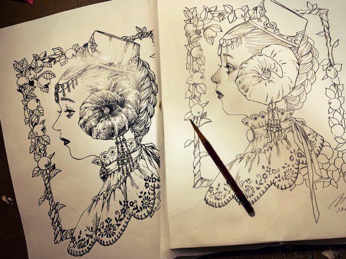 明日追加するドローイングたち🌟 くるみ割り人形の2幕の各国の踊りをテーマにしたドローイングです🤗 先日購入したクラフトの水彩紙に描いてみました🎅