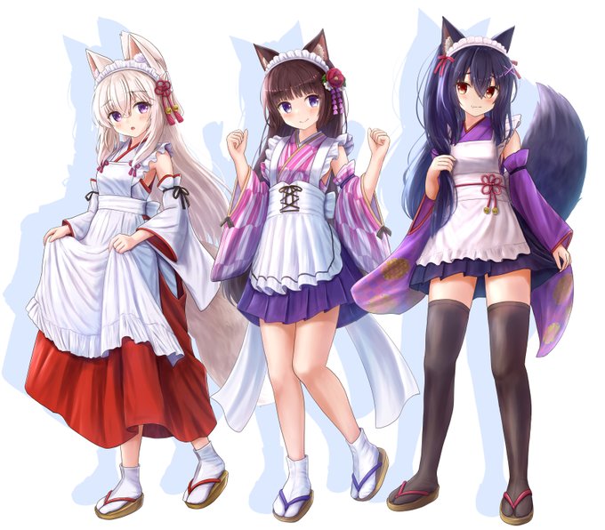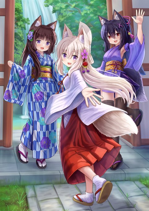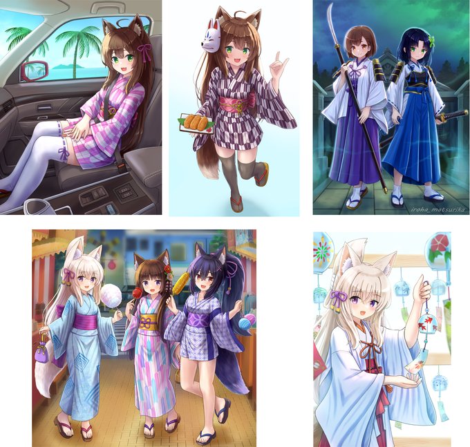 新作うちの子ミニ色紙です🦊🐱🐺 「狐娘の膝枕」「猫と雨宿り」「オオカミくノ一ちゃん」全てミニ色紙用に加筆いたしました🖌 キャンペーン詳細 twitter.com/pgrxm453/statu…
