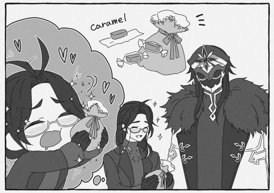 💖capilone's white day💖 ⚔️: Pantalone, thanks for the chocolate on Valentine's Day. Please accept this. 💰: Wow, thank you! Is this... Is it caramel? twitter.com/iroharoiro/sta…