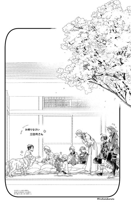 7/18(月)CC福岡『いろはこ。』さみくもさん新刊『お散歩* 本丸の雨さん雲さん2』40頁完成致しました🐾。 雨さんと雲さんが一緒に迎える初めての年末年始のお話です。江さん達や刀さん達のほのぼの本丸日常話です。 宜しくお願い致します🌸。 サンプル①