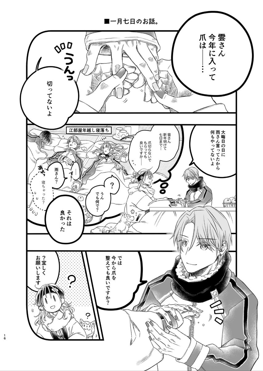 76 376 7/18(月)CC福岡『いろはこ。』さみくもさん新刊『お散歩* 本丸の雨さん雲さん2』40頁完成致しました🐾。 雨さんと雲さんが一緒に迎える初めての年末年始のお話です。江さん達や刀さん達のほのぼの本丸日常話です。 宜しくお願い致します🌸。 サンプル① 22/07/03 19:24