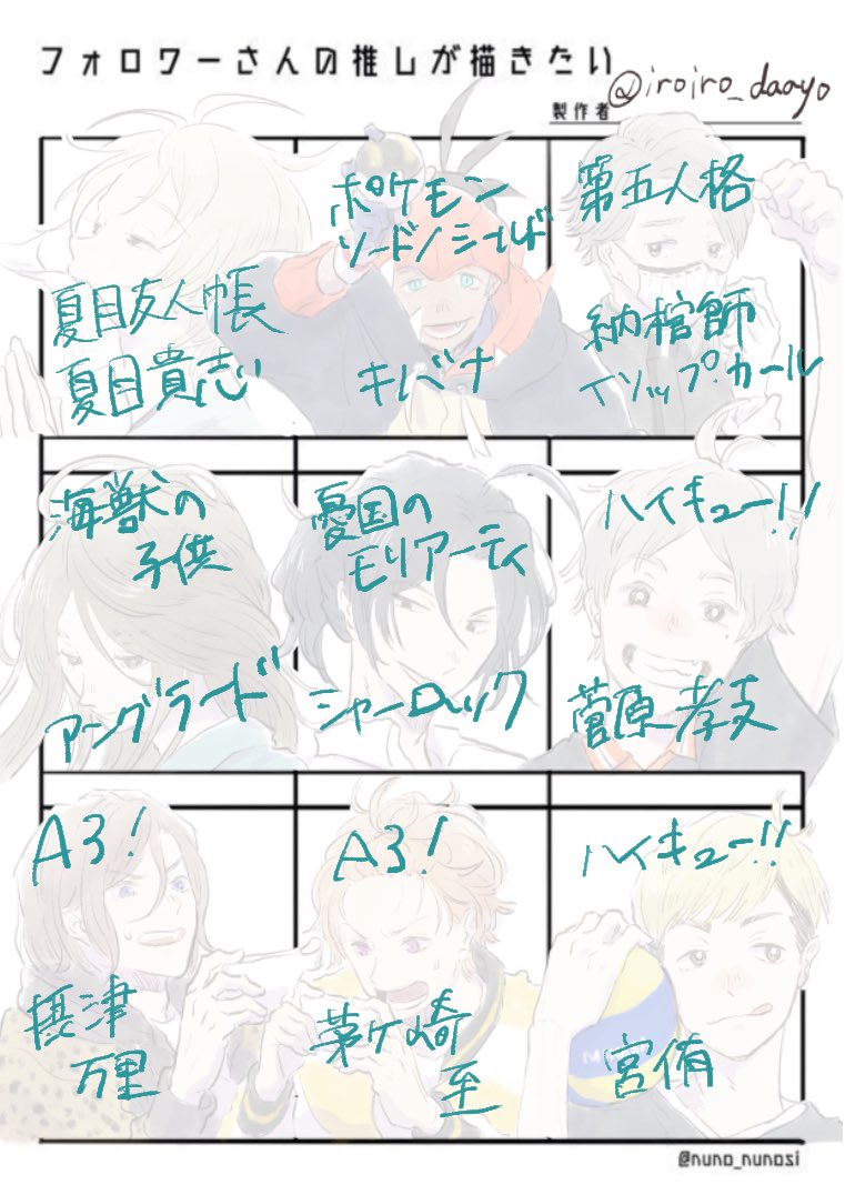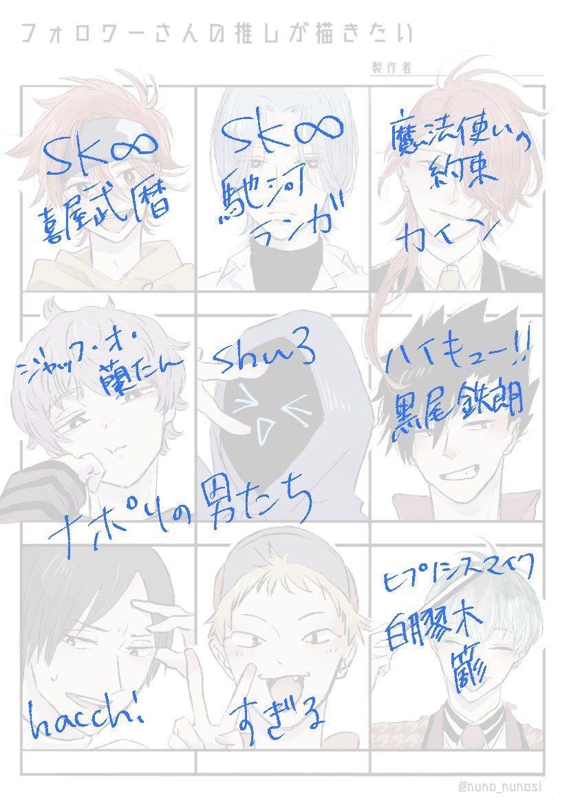 推し描かせていただきました!!ありがとうございました〜😆 ちょうど4つあまったので自分の好きな男たちを描きました。
