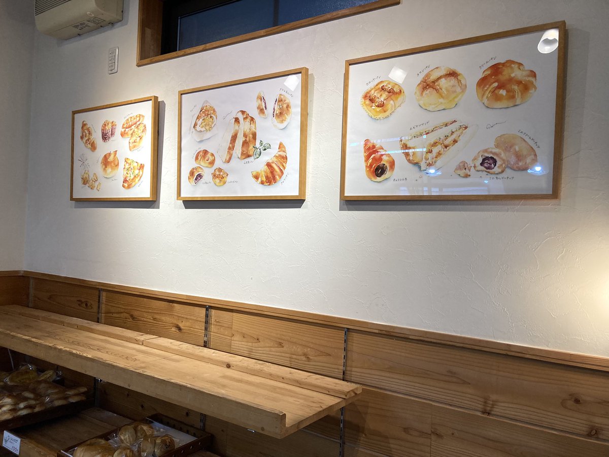 メニューのパンを描かせていただきました! 全部おいしいけど、個人的にはエビカツサンドとりんごちゃんとダブルあんパンが好きです🤩 滋賀県草津市の むらさんの手作りパン🌿 営業時間 月〜土曜 8:30〜13:00
