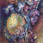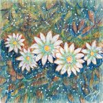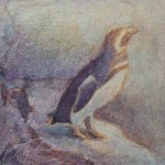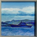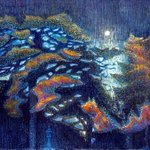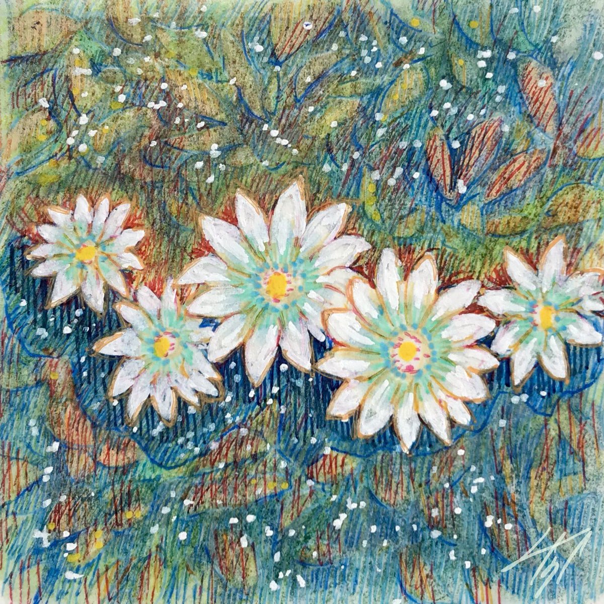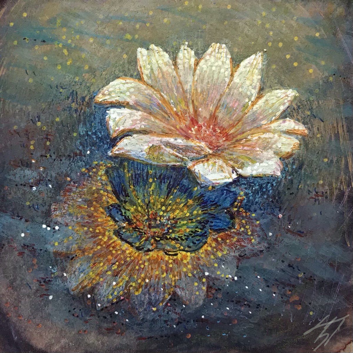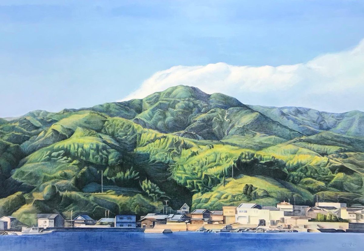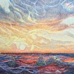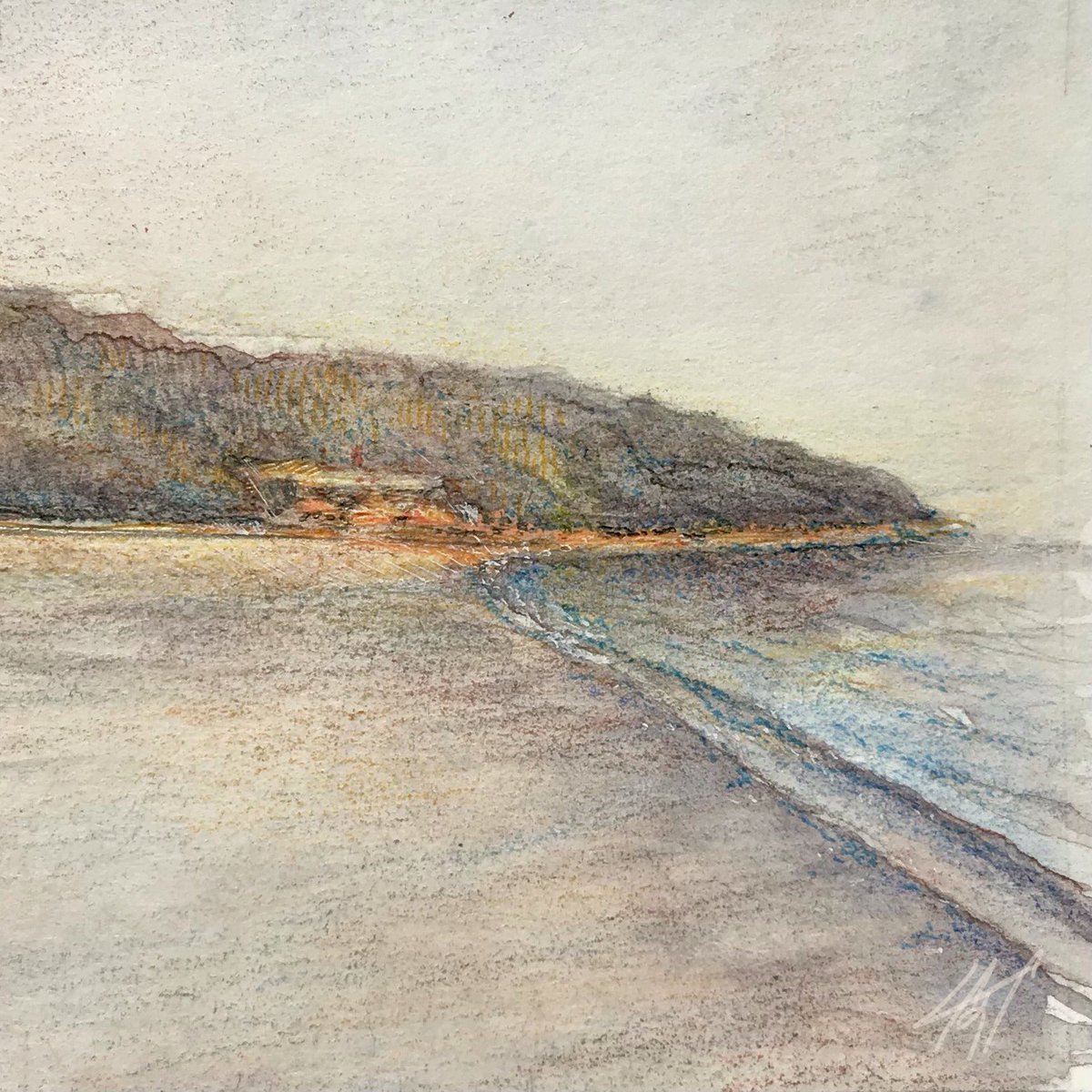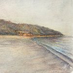 【作品紹介】 小さな絵画シリーズ 「海岸のまぼろし」 原画サイズ:55×55㎜ 使用画材:水彩、色鉛筆、ボールペン 夢うつつな記憶の中の、遠くてよく見えない海岸の向こうにある何か まぶたの裏側に浮かぶ記憶の中の風景を描きました #人間の間の絵置き場