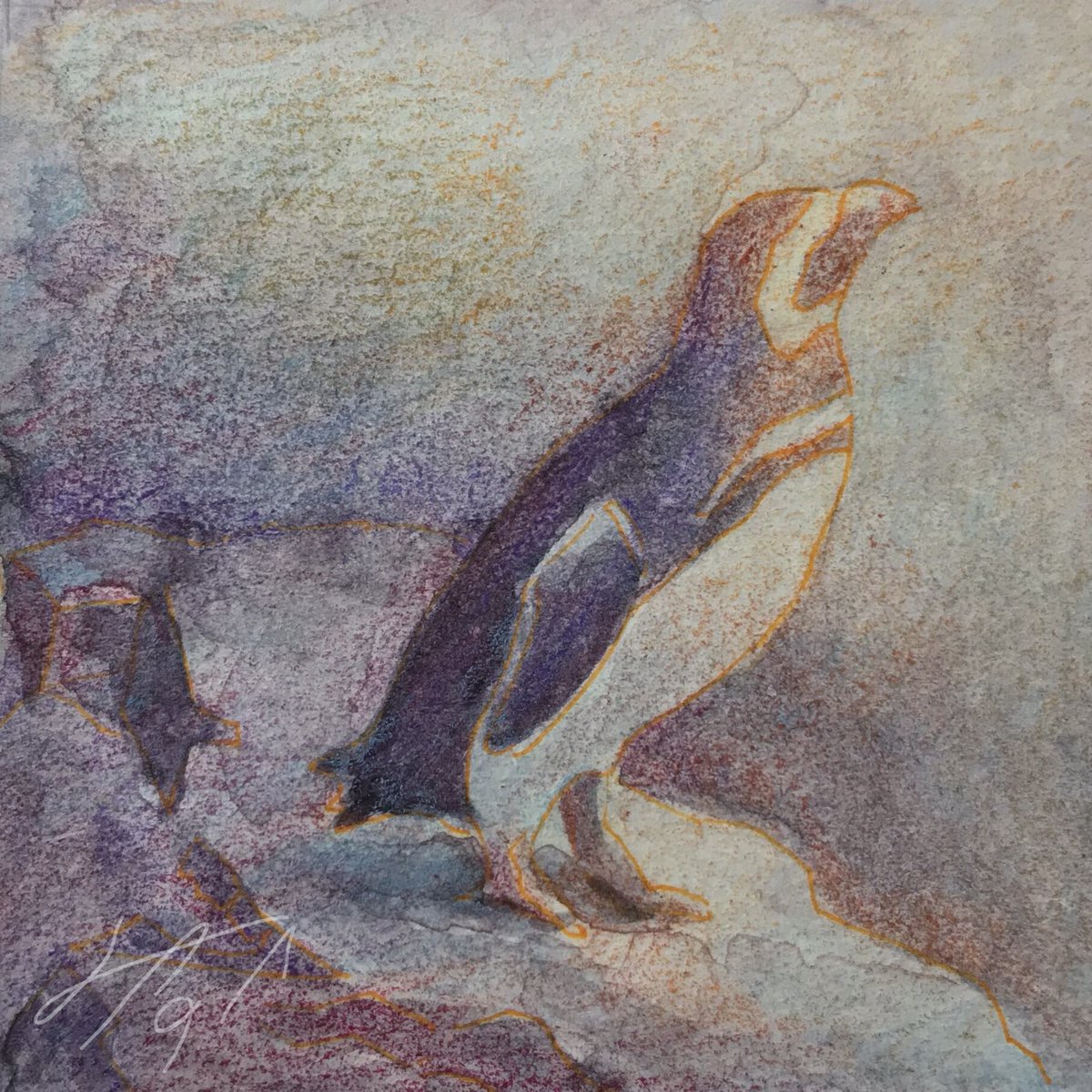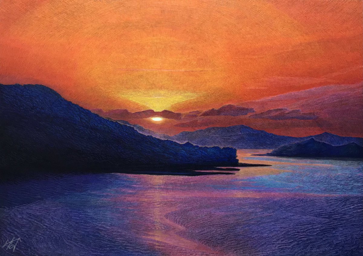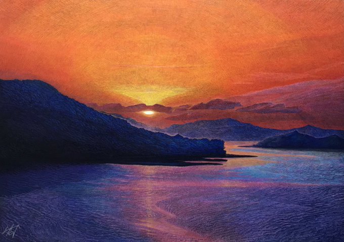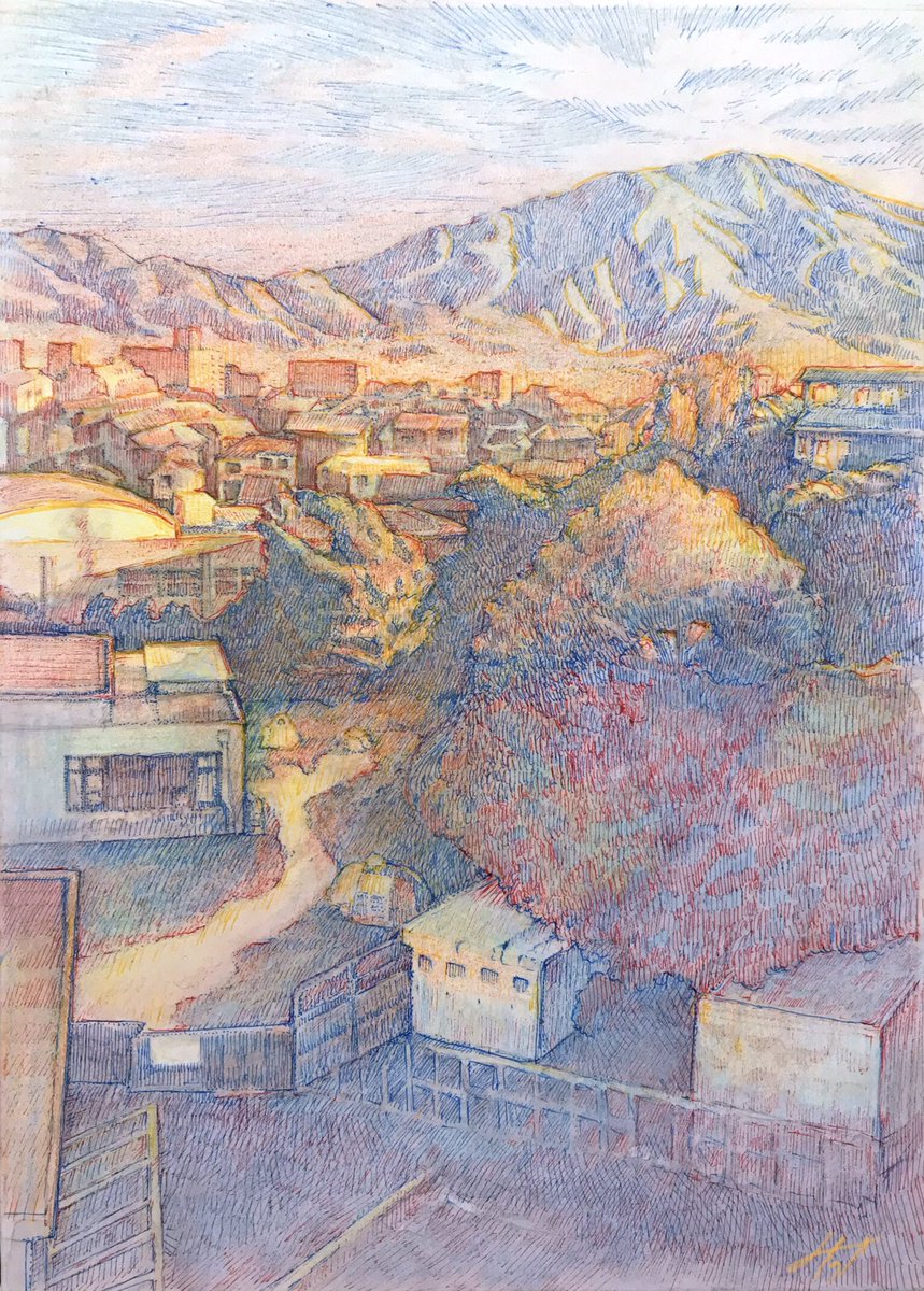 【作品紹介】 小さな絵画シリーズ 「あの日の帰り道」 原画サイズ:55×55㎜ 使用画材:水彩、色鉛筆、ボールペン 仕事や学校などの帰り道に見た光景はなぜか記憶に残りやすい気がします 身体に夕陽が沁みていくような感覚を覚えることがありそれをイメージしながら描きました #人間の間の絵置き場