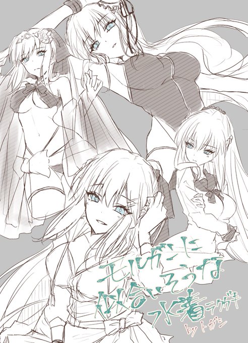 87 439 モルガンに似合いそうな水着を他キャラから拝借してみた落書き(頂いたコメント反映) #暑いので水着絵で体温調節する 23/05/29 18:38