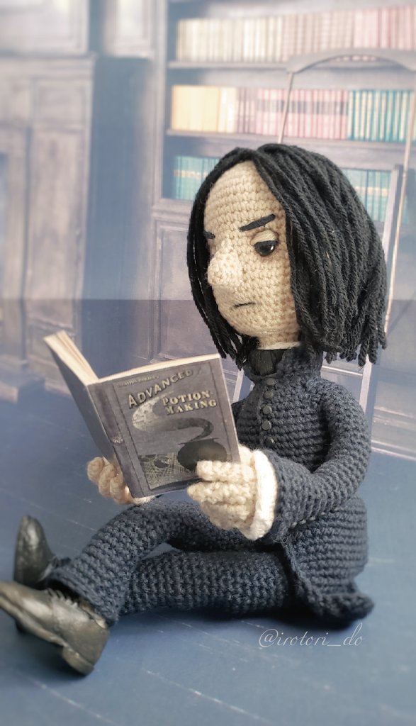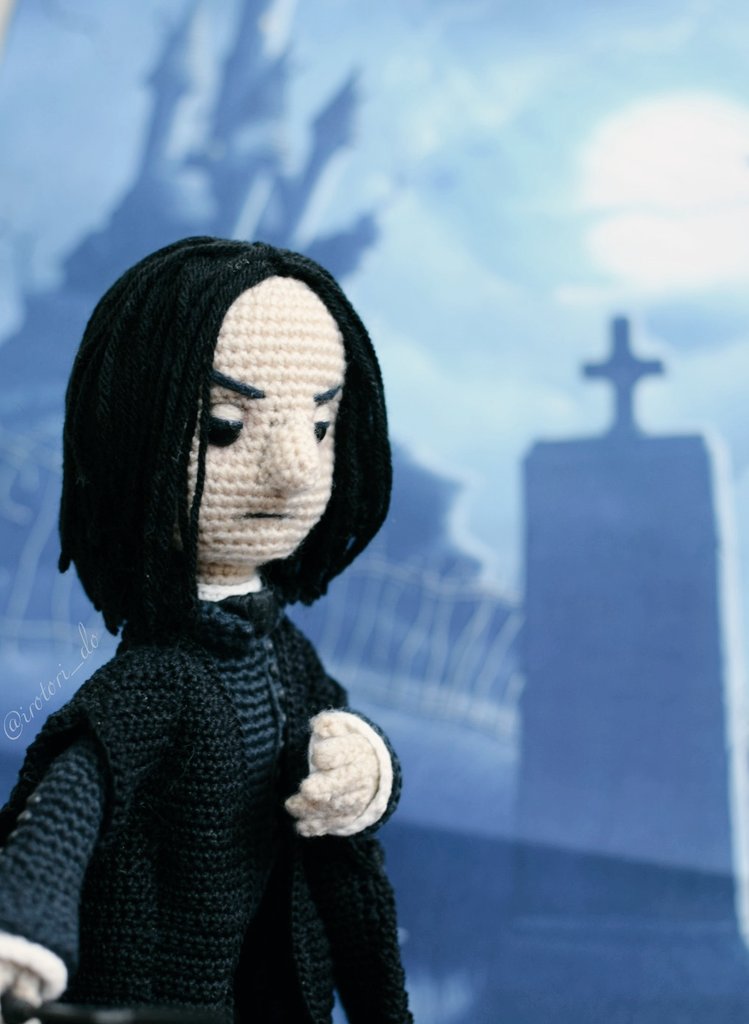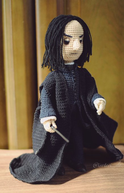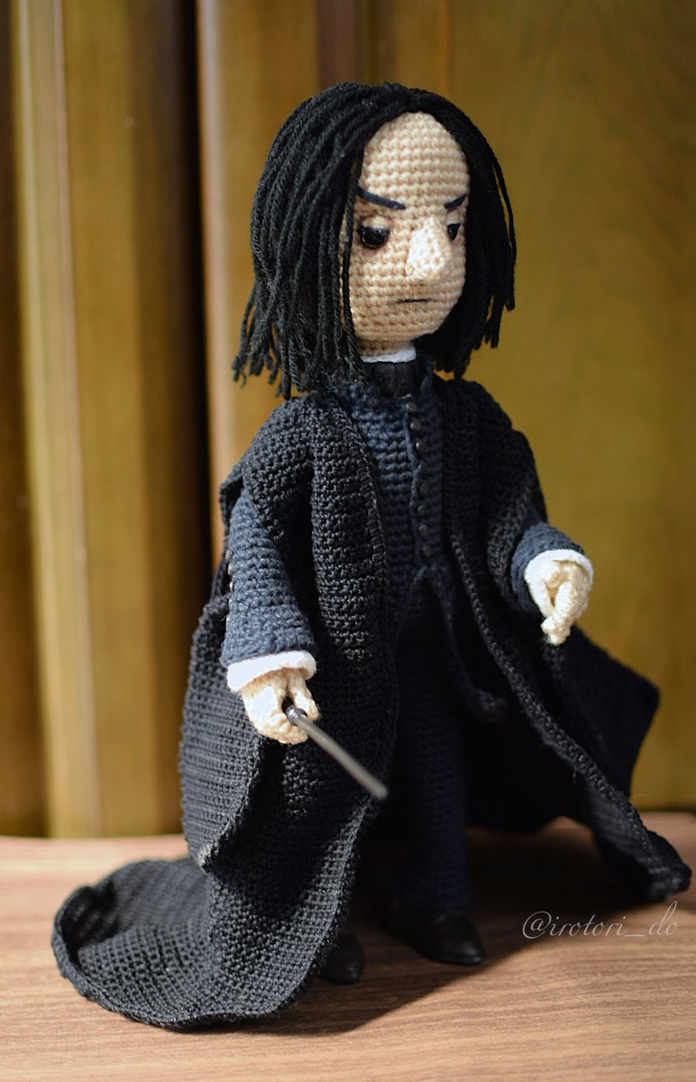 ハリーポッターシリーズより セブルス・スネイプ あみぐるみ 高さ約28cm amigurumi:Severus Snape #あみぐるみ #amigurumi 最後の最後までどう表現しようか悩んだパーツは「鼻」でした。