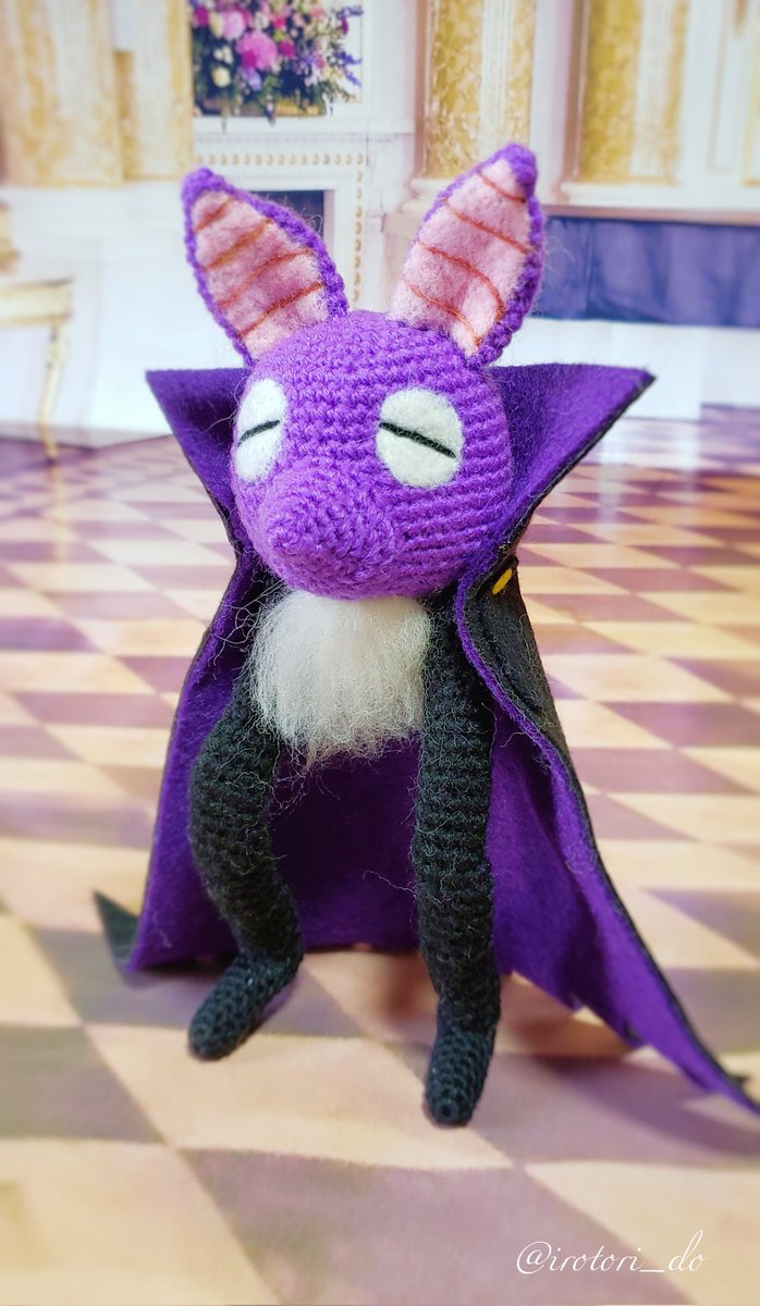 「吸血鬼すぐ死ぬ」第1死より、変身失敗ドラルクを🦇 日の光NGなので庭で撮影できないのが残念。 こうして見ると、後ろ姿のシルエットはちょっとかっこいいですね。 ドラルク、お誕生日おめでとう! #あみぐるみ #ドラルク生誕祭2021 #ドラルク誕生祭2021