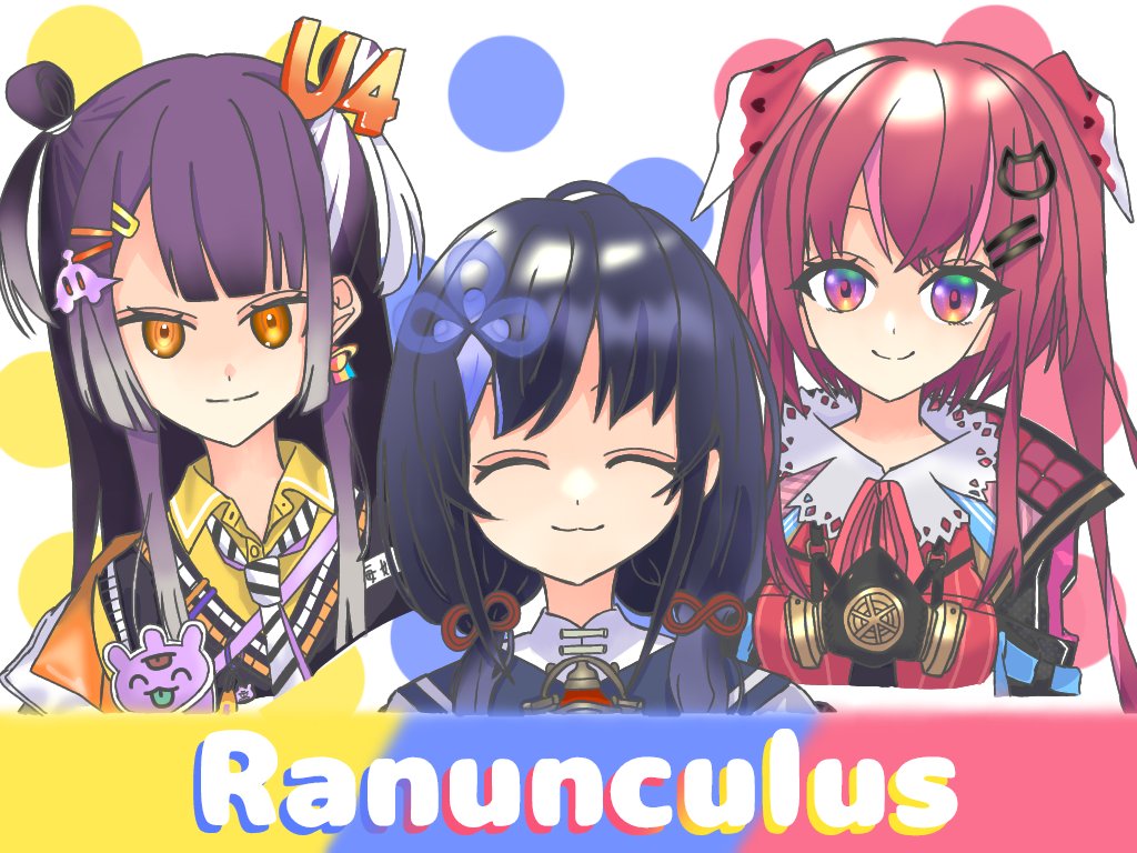 改めて #Ranunculus デビューおめでとう🎉&収益化おめでとう! 3人とも個性的で面白い!応援しています🥳📣 #Yotsuh_Art #ぽんとれーと #むにゃーと