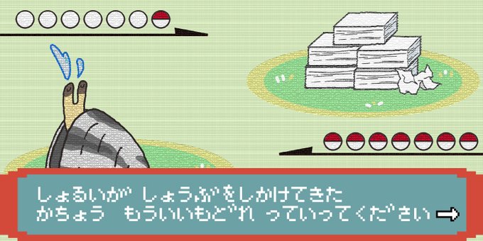 しょるいが しょうぶを しかけてきた! もういい もどれ あさり っていってくださいっす。