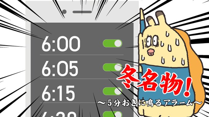 朝が弱い皆さん~!秋冬名物の「5分おきに鳴るアラーム設定」っすよ~!