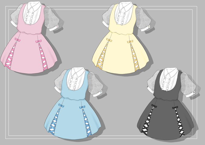 デザイン描いてみました!! 袖はオーガンジーにレースを重ねて涼しげだけど腕を出しすぎず!! スカート部分はサテンリボンで可愛らしく!! カラーも涼し気な色にしました!!よろしくお願いします!! #ディアマイラブのデザイナー3