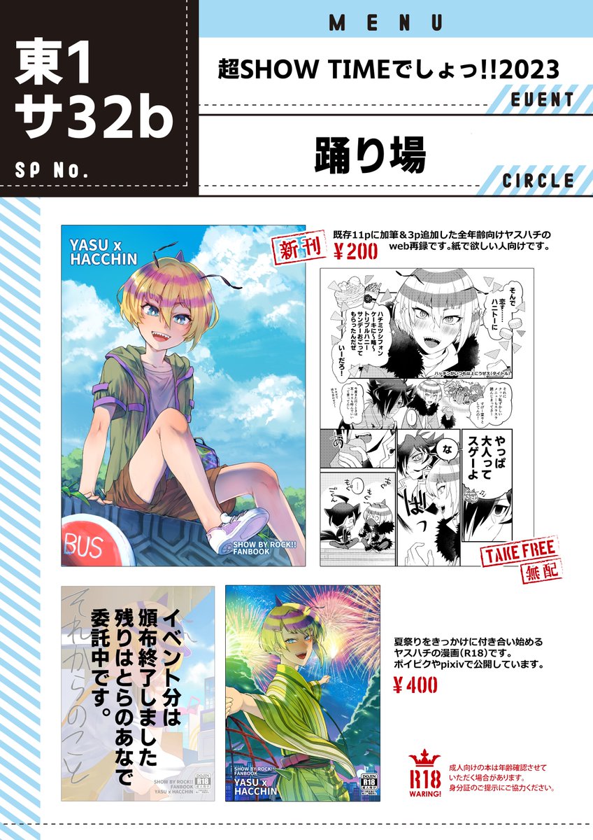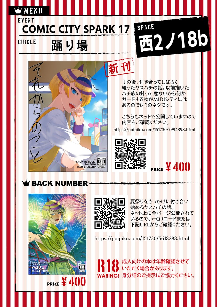 12/18のSHOW TIMEでしょ!!に西2ノ18b「踊り場」で参加します。ヤスハチです。 やっっっっっと2冊目完成しました。URLから全頁確認できます。よろしくお願いします。 poipiku.com/151730/7994898…