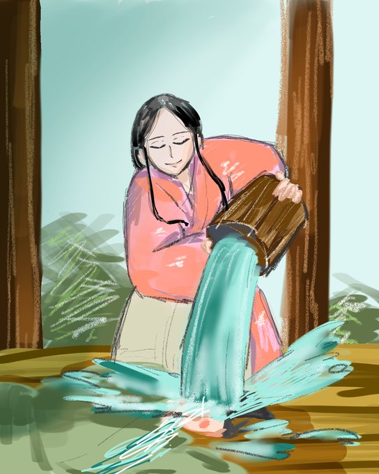 鎌倉名画「水を注ぐ女」 #鎌倉絵 #殿絵