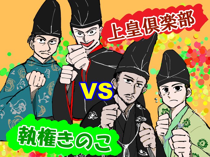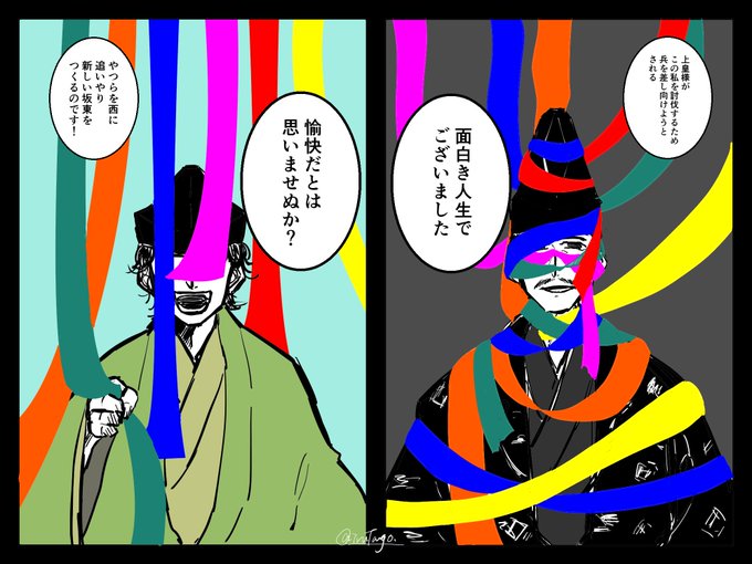 な~にが承久の乱ですか!!裏番組を見習って平和に漫才で決めろ!!! #鎌倉絵 #殿絵