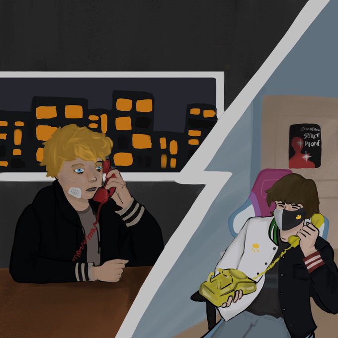 [retweet appreciated !!!] tommy is always scared to pick up that damn phone, but this time it’s not his landlord on the line. it’s a complete stranger. #generationloss #tommyinnitfanart #ranboofanart #dsmp