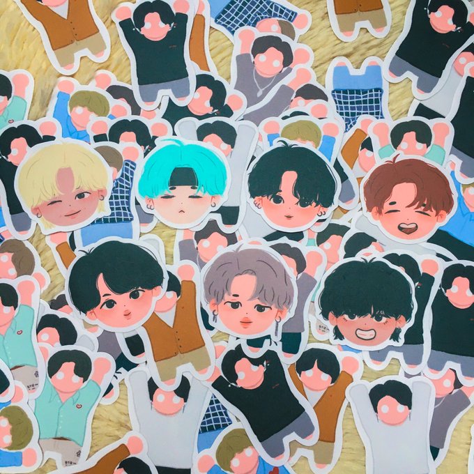 [please help rt] BTS Stickers by @isabiph Cutie Lovely BTS and BTS Beasts 🧃₱150 each 🧃waterproof 🍯for more info and designs, check out our shop! dms are always open ❤️ 🛒 shopee.ph/isabipins #bts #btsstickers #btsfanart #btsph #artph #fanart #kpop #stickers