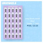 here are some of our other products! <3 BTS Dynamite Set: ₱120 🧃matte vinyl 🧃NOT laminated (will release a laminated ver soon!) Army Bomb Mood Sheet: ₱150 🧃1" each sticker 🧃matte laminated, waterproof 🧃can be used in journals! #bts #BTS_Dynamite #artph #btsfanart