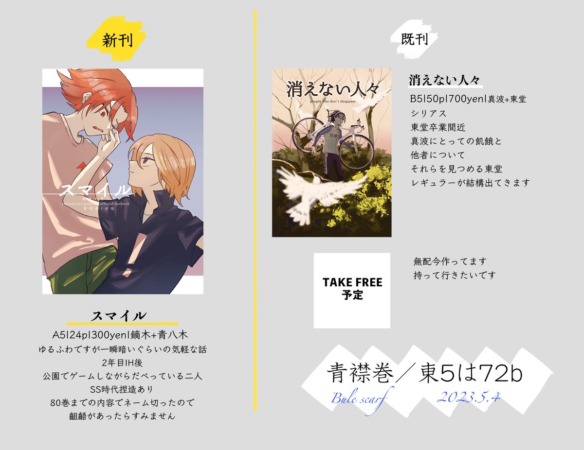 2 2 お品書きです 新刊サンプル 【pixiv.net/artworks/10754…】 既刊サンプル 【pixiv.net/artworks/94213…】 めっちゃ使い回しです よろしくお願いします 23/05/03 19:08