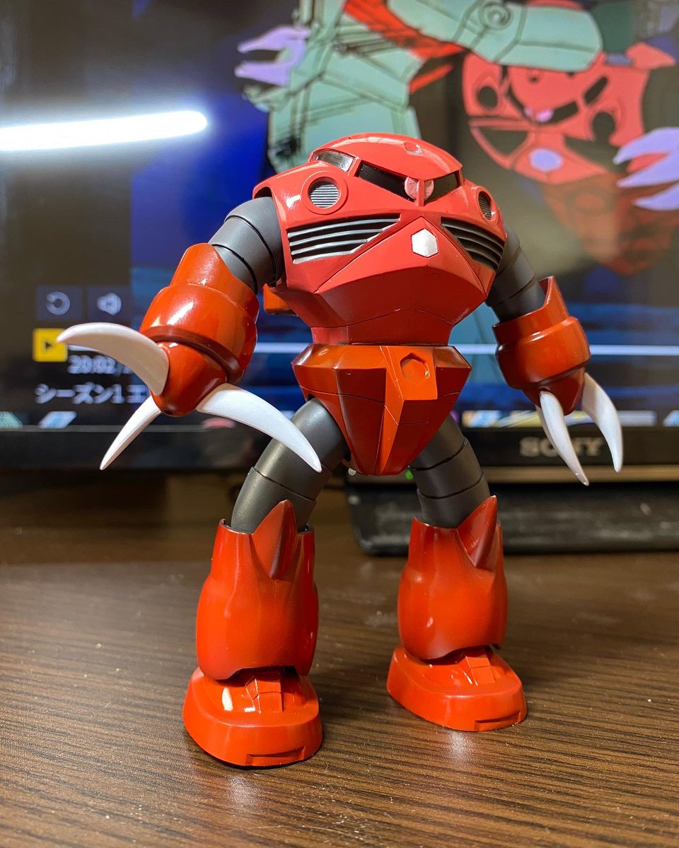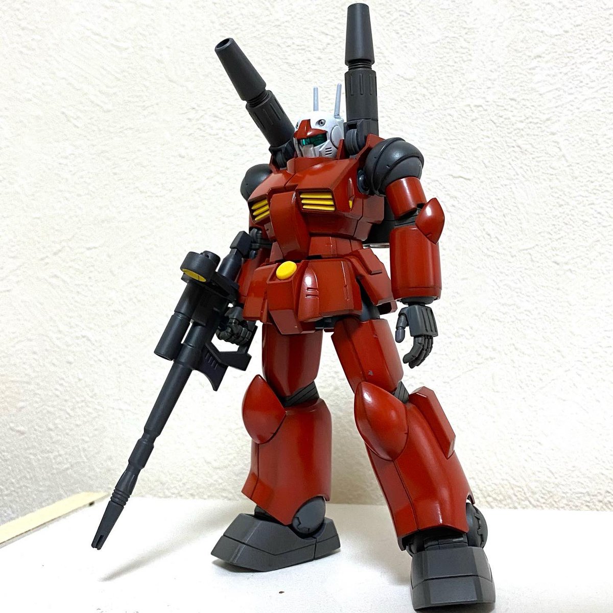 #今月作ったプラモ晒そうぜ ◯HGグフ、シンプルに青で統一して、エッジを白くした腿の十字がお気に入り♪😀 ◯HGガンキャノン、イイ赤に😊アドバイスありがと ◯HGザクII、盾ぶ厚くしただけテキトーにサクッと🤣がんばらなーいw #独りHG一年戦争