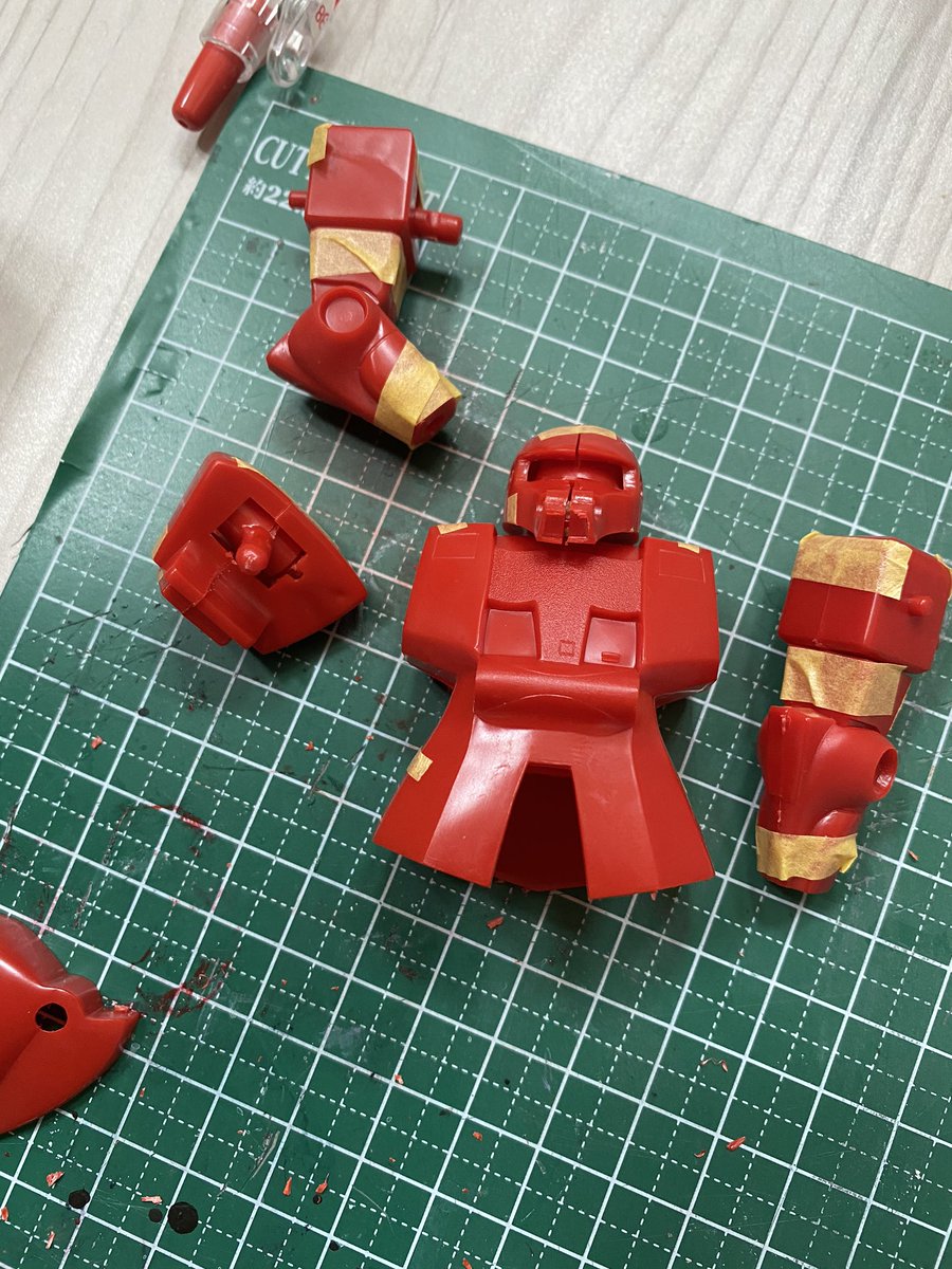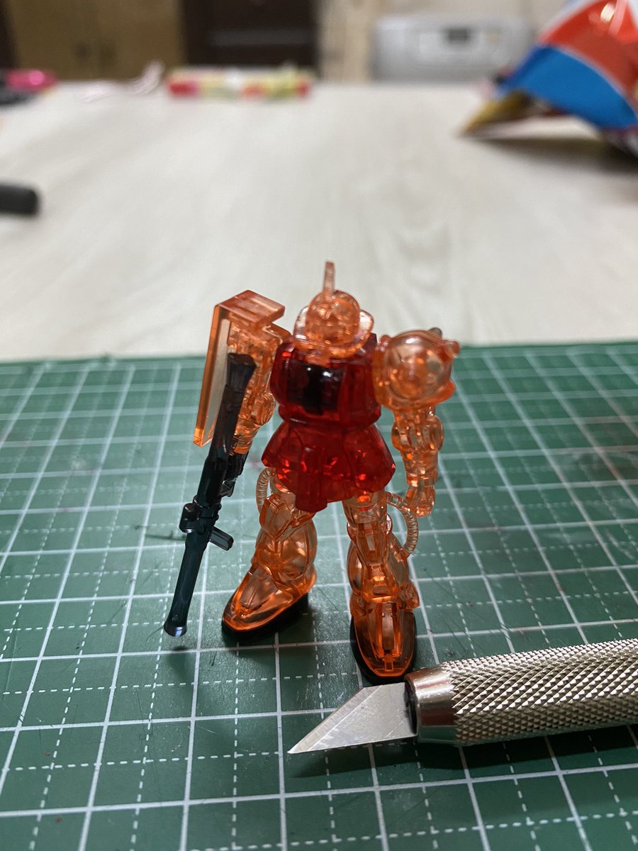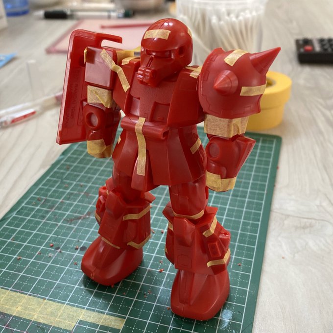 キミ、俺好みのザク頭してるねぇ〜♪ (・∀・*三*・∀・) 短足ギミだけど(笑) 延長・工作なんてアームないから合わせ目消して塗装だな (・∀・) #ジョニーライデン専用ザク #ガンプラ #もけんちゅ
