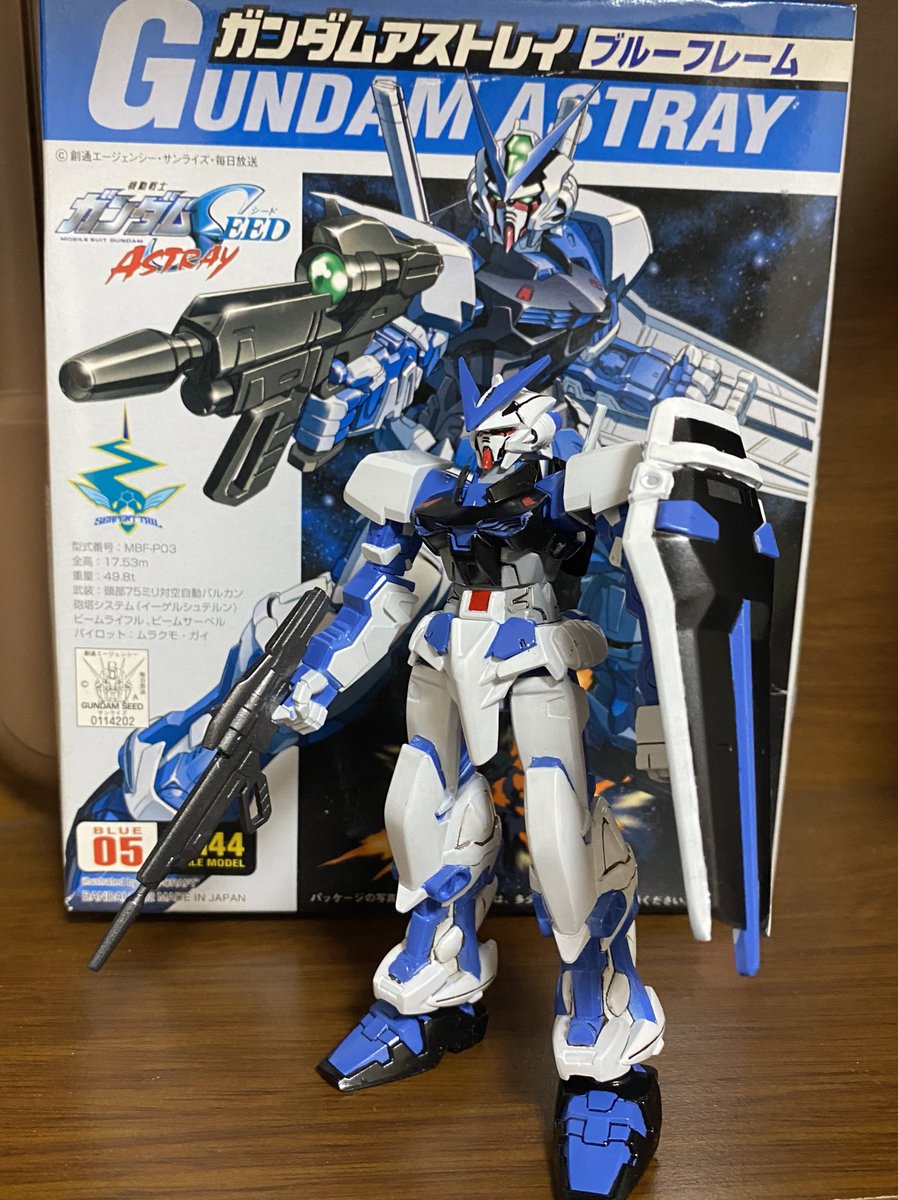 FGガンダムアストレイブルーフレーム完成。 押し入れの中のレッドフレームと比べてみた (ノ▽`)上達どころか雑になっとる(泣笑) ま、いっかw (;;≧▽≦)y─┛~~ #下手ですけど何か? #ガンプラ #ガンプラ初心者