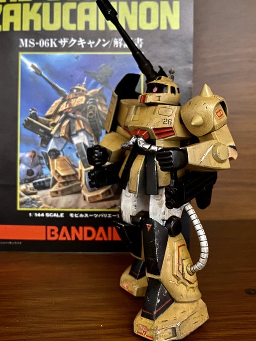 ザクキャノン!これにて完成 ヘ(゚∀゚*)ノ エアブラシの練習用に、合わせ目消さず組んで、真っ黒に塗ったり、扱いが雑すぎて三回床落下破壊したり、瓶クリア試したり…いろいろ働いてもらった(笑) ザクキャノくん、お疲れ様。 (`_´)ゞ #ザクの日 #ガンプラ #下手くそで何が悪いw