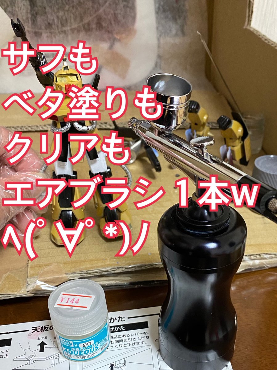 県外の息子に仕送りするオトサンは790円の一番くじは高いので、225円FGで作た🤣ヒマかかってネタとしての旬を逃すw ・つや消し剤で超マットに ・バズーカ持てず右腕切り貼り固定 ・水面斬りして首削りアゴ引き #ガンプラの画像貼るとRTされると聞いて プロトタイプVerも欲しくなったからFG買ってこよw