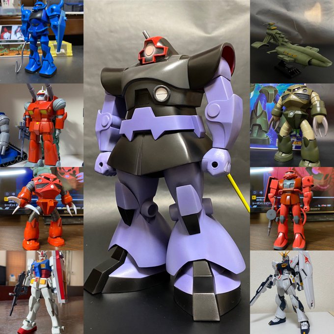 #今月作ったプラモ晒そうぜ ドム楽しかったなぁ〜♪ 淡いグラデを自画自賛w グフはつや消しもう一回吹こうっと! やぱファーストのジオンは最高だね 😆 旧キット 1/100 ドム 旧キット 1/144 グフ