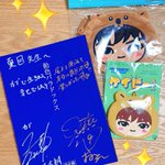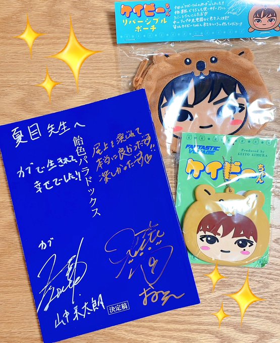 出してもいいと言われたので最終話前にいただき物お披露目😊嬉しいお言葉とサインとケイビーちゃん、大事にします🙏✨そして尾上の名前がサインぽくなってて、いいなー!って😂もう尾上のサインはこれでいこうと思います✨ #飴色パラドックス