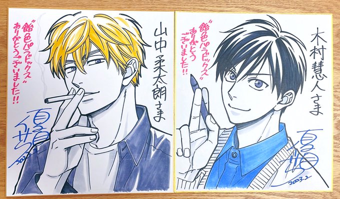 168 1685 今更かなぁと思ったんですが、聞いてみたら届けていただけるそうなので、これからお2人にお礼を込めて色紙描きます。 届くといいなぁ #飴色パラドックス 23/02/10 23:46