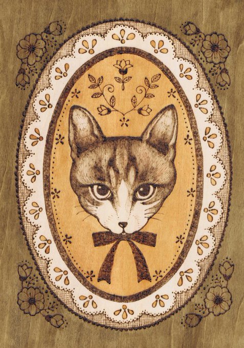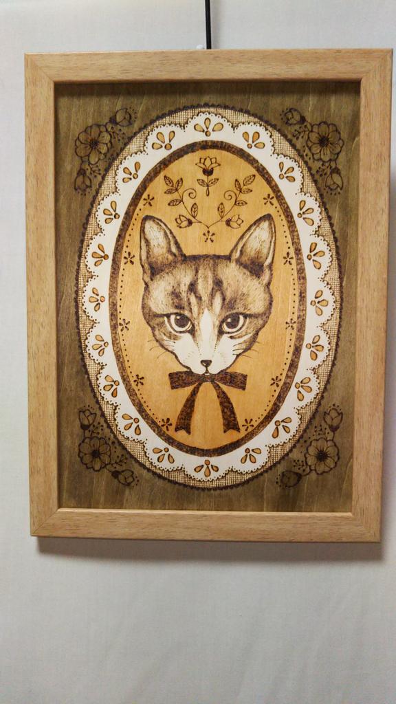 #アナログ絵を流してアナログ民を増やそう ウッドバーニング絵ですが…アナログということで。 ちなみに猫絵の方は縮小~合皮に転写して、コースターとしてコチラで販売しております。 horibakoubou.booth.pm