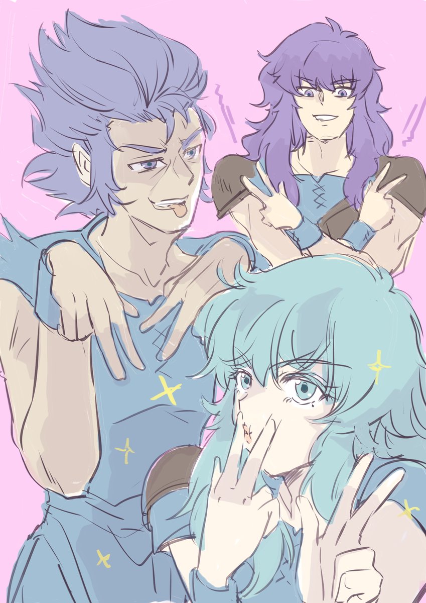 26 164 #聖闘士星矢十二宮版ワンドロ・ワンライ お題:ダブルピース ♏️♋️♓️水星座 VVV 22/05/29 01:47
