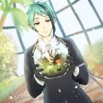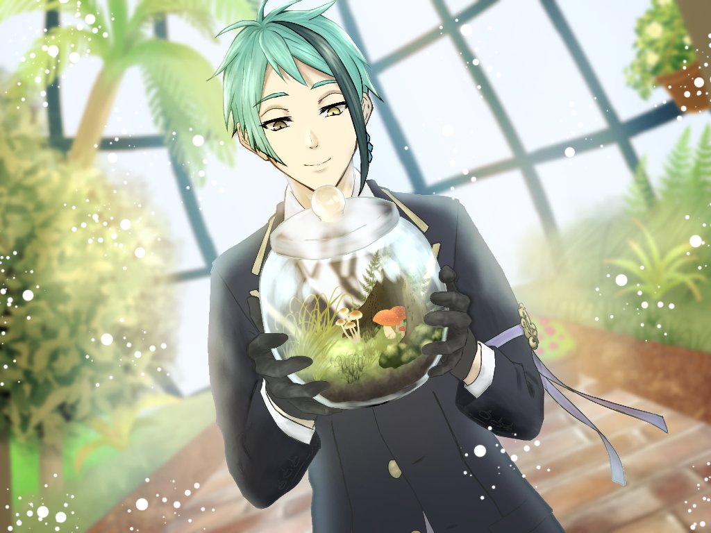 (私の)3章突入記念 第2弾 監督生がジェイドにキノコのテラリウムをあげたよ! 監「テラリウムって陸上の生物を育てる方法ですよね?なので食べれないキノコでも活用できると思って!」 #twstプラス #ツイステファンアート