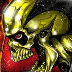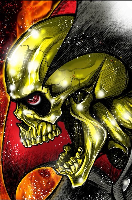 漫画「黄金バット」第6話掲載のチャンピオンREDは明日発売! 元ネタ知らない人の為に説明しとくと、画像一枚目のガイコツが黄金バット。 悪そうだけど正義の味方だよ!🦇💀🦇 twitter.com/iseshima_attac…