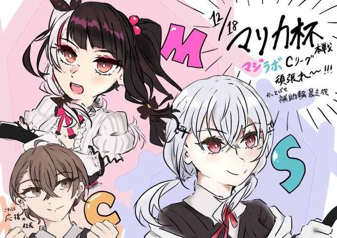 マリカ杯、同リーグのマジラボ2人とも頑張れ〜!!かっ飛ばせ、補助輪暴走族💪 #れなの鳥っくあーと #はかせレポート #加画美 #SMC組