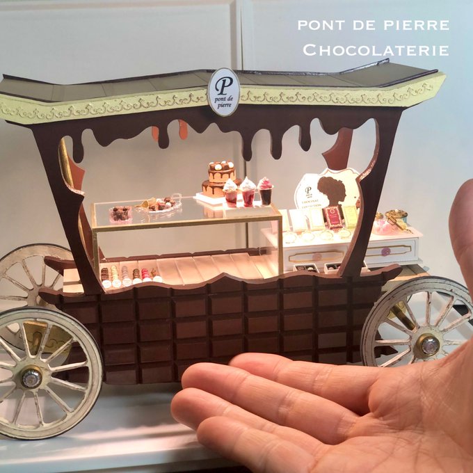 ショコラの馬車、完成しました! ショーケース内のショコラなどの画像は11月20日からのミニチュアアート展2021オンライン展示ギャラリーでご覧ください! 家の前にこんな屋台が来てくれたら、 嬉しいなぁーって妄想で作りました。 ぜひ✨ #ミニチュアアート展2021 #ミニチュア