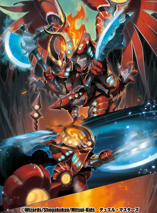 【お仕事情報】本日タカラトミー様より発売のデュエル・マスターズ アビス・レボリューション 第2弾 「忍邪乱武」にて 『セルリアン・アックス・ドラゴン / ダブルアックス・チャージャー』を描かせていただきました!ミモザスター共々宜しくお願いします! dm.takaratomy.co.jp/product/dm23rp… #デュエマ
