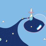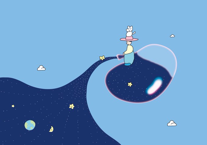 おしっこするように夜を撒くので、なんかばっちいなぁと思ってる犬と、楽しむ星たち #朝の落書き